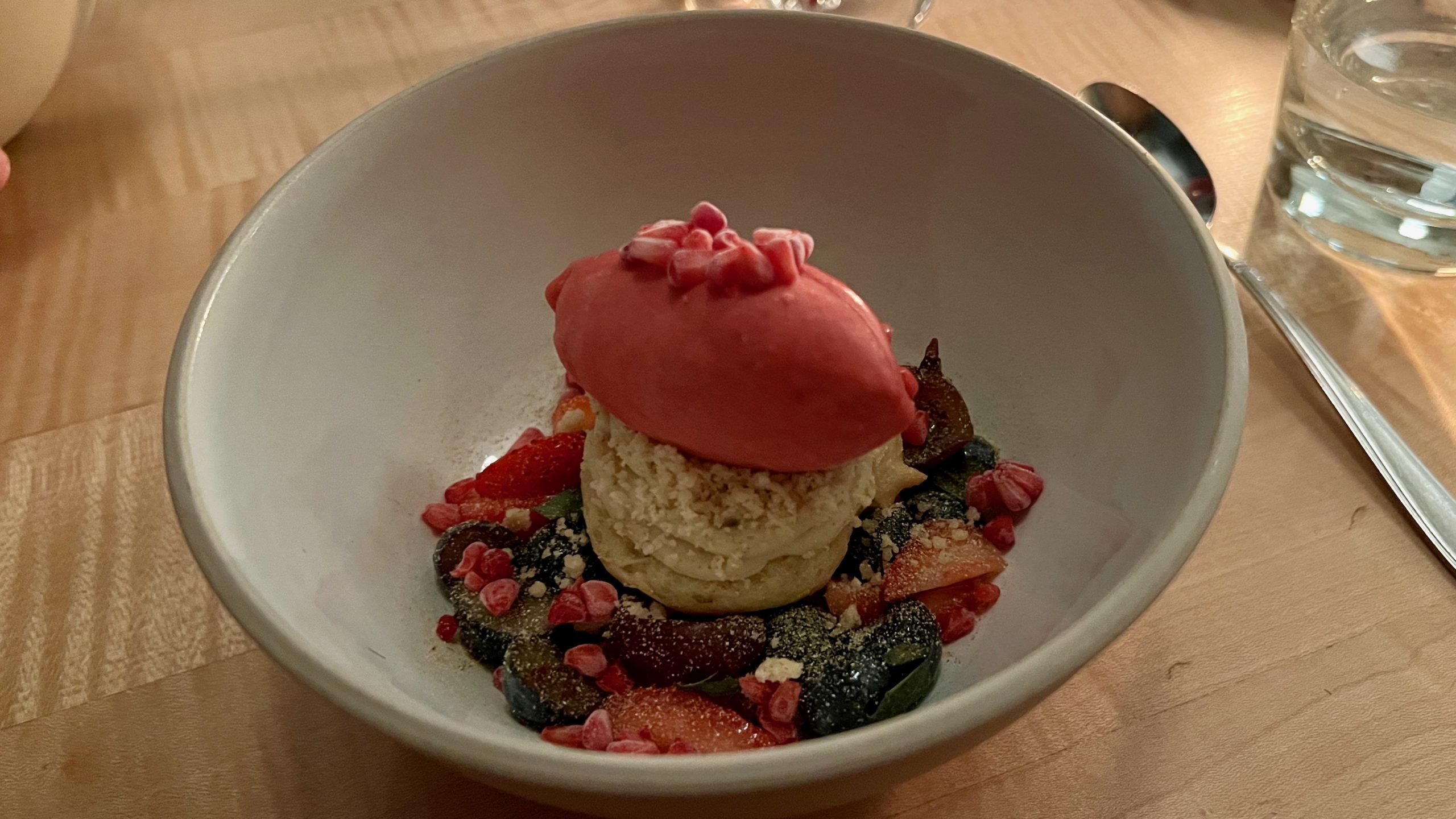 Another visit to restaurant moment in Bern. This was the Summer Menu, five course option plus cheese course, with wine pairing. Summer is probably my favorite food season because of tomatoes and the fruit, and this didn’t disappoint.